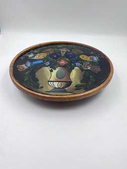 Enorme cuenco antiguo firmado Bassano en mayólica trenzada calada