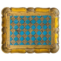 Bandeja de Cerámica Azul Cobalto Vintage - Pintada a mano con Oro y Esmalte - 32 cm