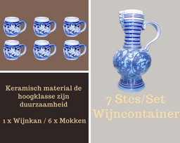Servicio de licores Art Nouveau de gres flameado de Denbac, juego de 7