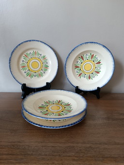 Juego de 4 platos llanos "Maroussia" de Sarreguemines, principios del siglo XX