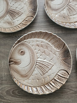 Cerámica V.A.R.M. - Italia, años 90 - 6 platos ovalados decorados a mano - motivo de peces