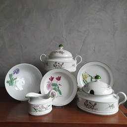 Figgjo Flint Turi Design, Juego de 4 tazas y platillos y tetera con decoración Market