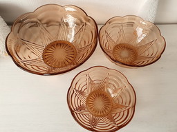 JUEGO ÚNICO DE TAZONES DE VIDRIO PRENSADO ROSA VINTAGE