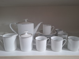 Servicio de café de porcelana de Limoges decorado con periquitos