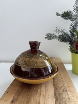 Bandeja para asar de terracota esmaltada antigua