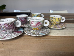 Juego de taza y platillo Annaburg posmoderno, estilo terrazo (5 piezas)