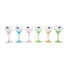 Vintage mid-century Kristalunie Carnaval gekleurde likeurglazen Max Verboeket cocktailglazen 1950's