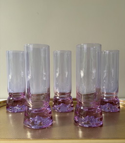 Juego vintage único de 6 copas de champán esmeriladas y sopladas a mano en tonos rosa y albaricoque.