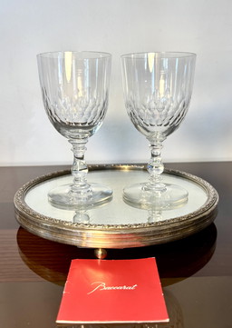 Juego de licores de cristal Baccarat - Juego de decantador de mesita de noche de cristal dorado francés vintage