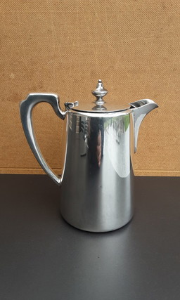 Sucre et pot à lait en métal argenté avec cuillère assortie
