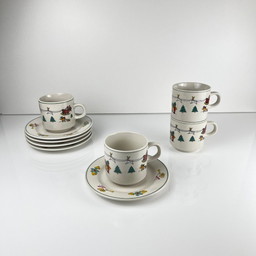 Set moka 5 pièces, porcelaine peinte à la main, de Schierholz, Thuringe, années 1950