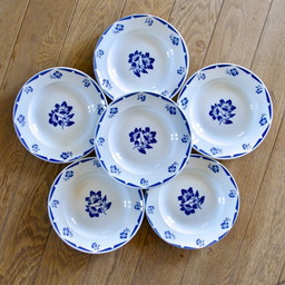 Lot de 6 Assiettes vintage creuses mouchetées bleues et blanches