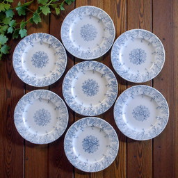 Service de 6 assiettes plates Churchill England, motif floral, 1970