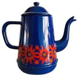 Cafetière vintage Finel Arabia émail bleu Kaj Gabriel Franck années 1960