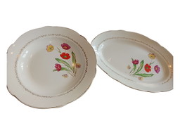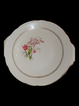 Plateau Artdeco porcelaine et métal fleurs graphiques