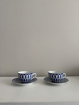 Raymond Loewy (1883-1986) Ensemble de 4 tasses à thé et soucoupes, Rosenthal Continental China, Script Decor