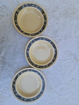 6 assiettes creuses faïence ancienne couleur crème et dorure Villeroy et Boch
