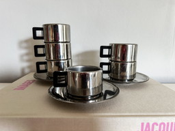 6X Casalinghi Italie Acier inoxydable Chromé Tasse et soucoupe expresso