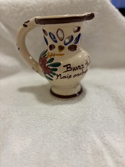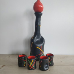 Rare carafe à décor de vin bleu cobalt-blanc-or, céramique, fait main, vintage