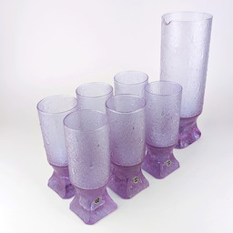 Set de 6 tasses à café en verre, violet, Vereco, 1970