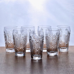 7 verres à longdrink anciens en cristal taillé