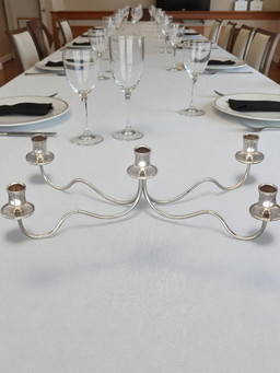 Chandelier à 5 branches en métal argenté, poinçonsChandelier à 5 branches en métal argenté, poinçons