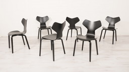 6 chaises de salle à manger noires par Arne Jacobsen pour Fritz Hansen modèle Grand Prix