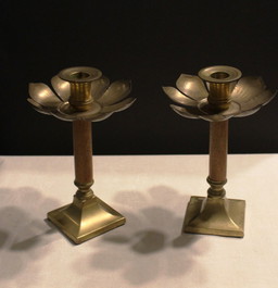 Paire de bougeoirs en laiton ancien