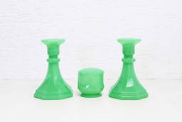 Lot de deux bougeoirs vintage en verre des années 1960, fabriqués en Scandinavie. Une paire de bougeoirs en verre des années 196