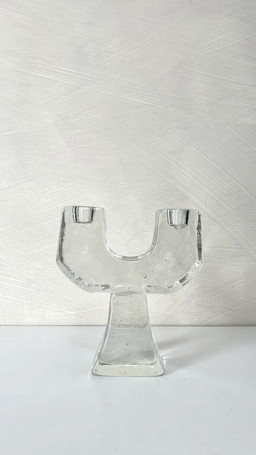 Bougeoir brutaliste Pukeberg en verre, années 70