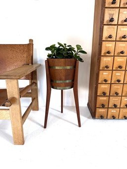 Jardinière vintage en teck et laiton, Jydsk Bødker '60