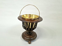 Belle jardinerie en cuivre avec fond en laiton sur pieds en bois - Vintage