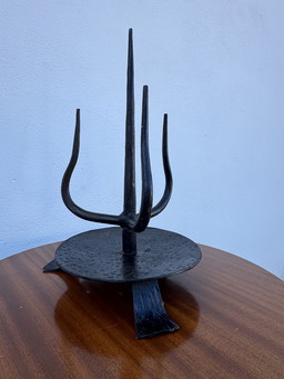 mid century cast iron CANDLE HOLDER brutalist design true vintage 1960s 70s candelabra