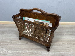 Porte-journaux vintage en bambou, bois courbé, lin, porte-revues rétro bohème tiki en rotin