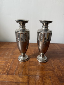 2 vases décoratifs monumentaux de couleur argentée