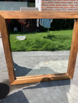 Grand miroir mural lumineux en bois de chêne des années 1960 - Fabriqué en Italie