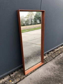 Miroir scandinave vintage en teck avec cadre rainuréMiroir scandinave vintage en teck avec cadre rainuré