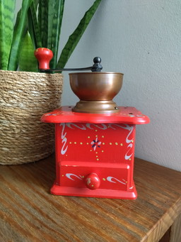Jouet vintage en bois, petit bonhomme en équilibre sur une balance