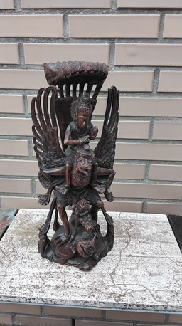 Grande sculpture en bois balinaise d'un marionnettiste de Danang