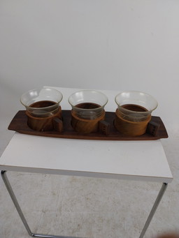 Serviteur, Centre De Table, Art Déco, Palissandre, Laiton, Verre, Années 30
