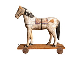 Cheval à bascule ancien en bois, jouet vintage avec patine d'origine
