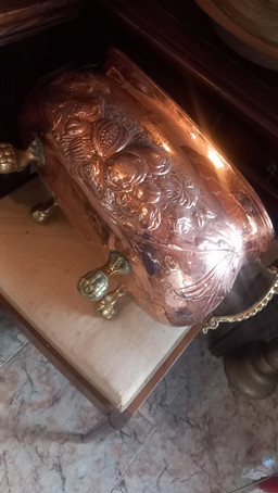 Zeldzame antieke handgehamerde koperen theeketel met komfoor-Maghreb.