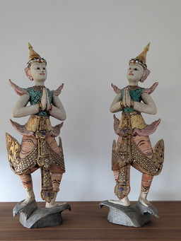 Lot de 2 statues princesse en acajou « l'amour d'un père »
