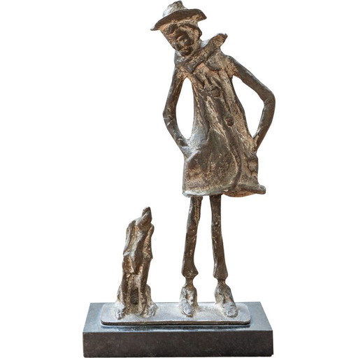 Statue en bronze vintage avec chien par Sella Casia, 1970Statue en bronze vintage avec chien par Sella Casia, 1970