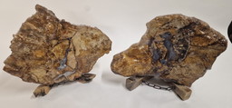 Bois pétrifié vieux de plusieurs millions d'années avec support en châtaignierBois pétrifié vieux de plusieurs millions d'années avec support en châtaignier