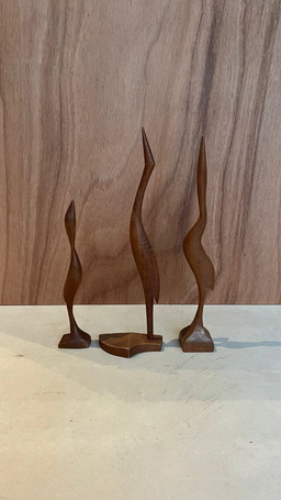 Statues de grues vintage en bois de teck, représentant des hérons