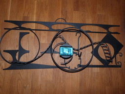 Vintage Blue Iron Facade Letter T, 1970s