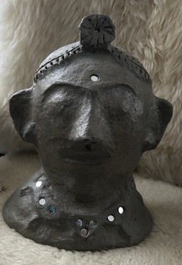 Masque en papier mâché style Picasso vintage avec support assorti