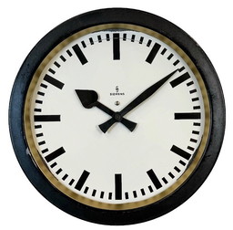 Grande horloge industrielle double face pour chemin de fer ou usine, de Pragotron, années 1950