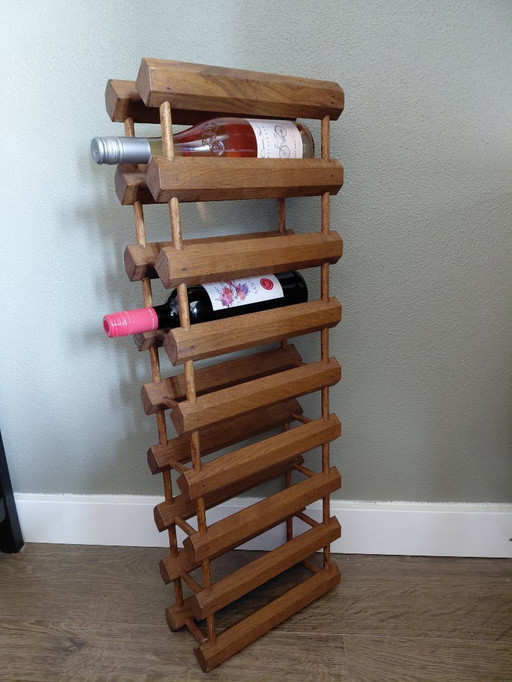 Rare 50s Oak Vintage Wooden Bottle Rack/Wine Rack With Top Shelf